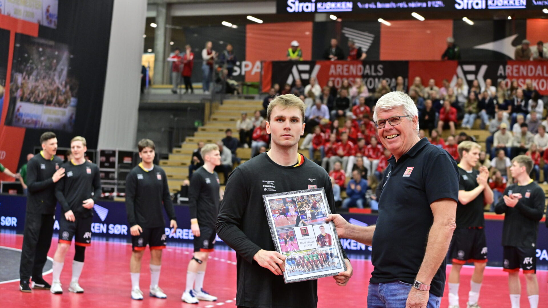Mathias Larson er årets ØIF-spiller sesongen 2023-2024. Han mottok prisen før kampen mot Elverum – og ironisk nok blir han Elverum—spiller neste sesong. ØIF Arendal ble rett og slett utspilt av Elverum i den siste semifinalen og tapte 41-30.
