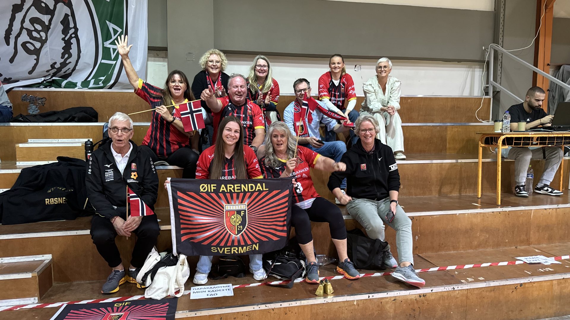V er så spente, selv om vi vet hva som venter oss idag. Med kun én tromme klarte de greske supporterne å lage ett vanvittig trøkk, vi må klare oss med våre stemmer, tuter og bjeller – vi savner tromma…